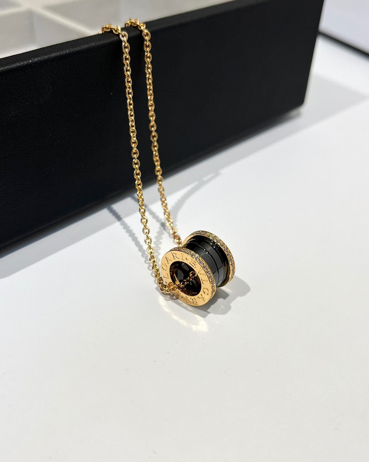 [Luna Brilliance]ZERO 1 BLACK CERAMIC DIAMOND PINK GOLD NECKLACE