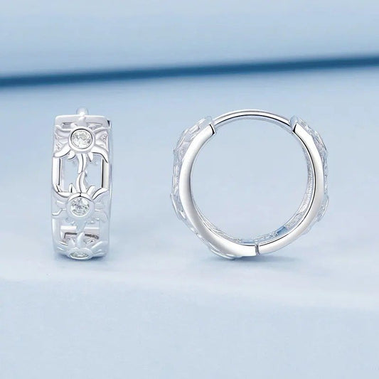 Huggie Earrings Ice Flower Zirconia Platinum Plated Hoop Earrings