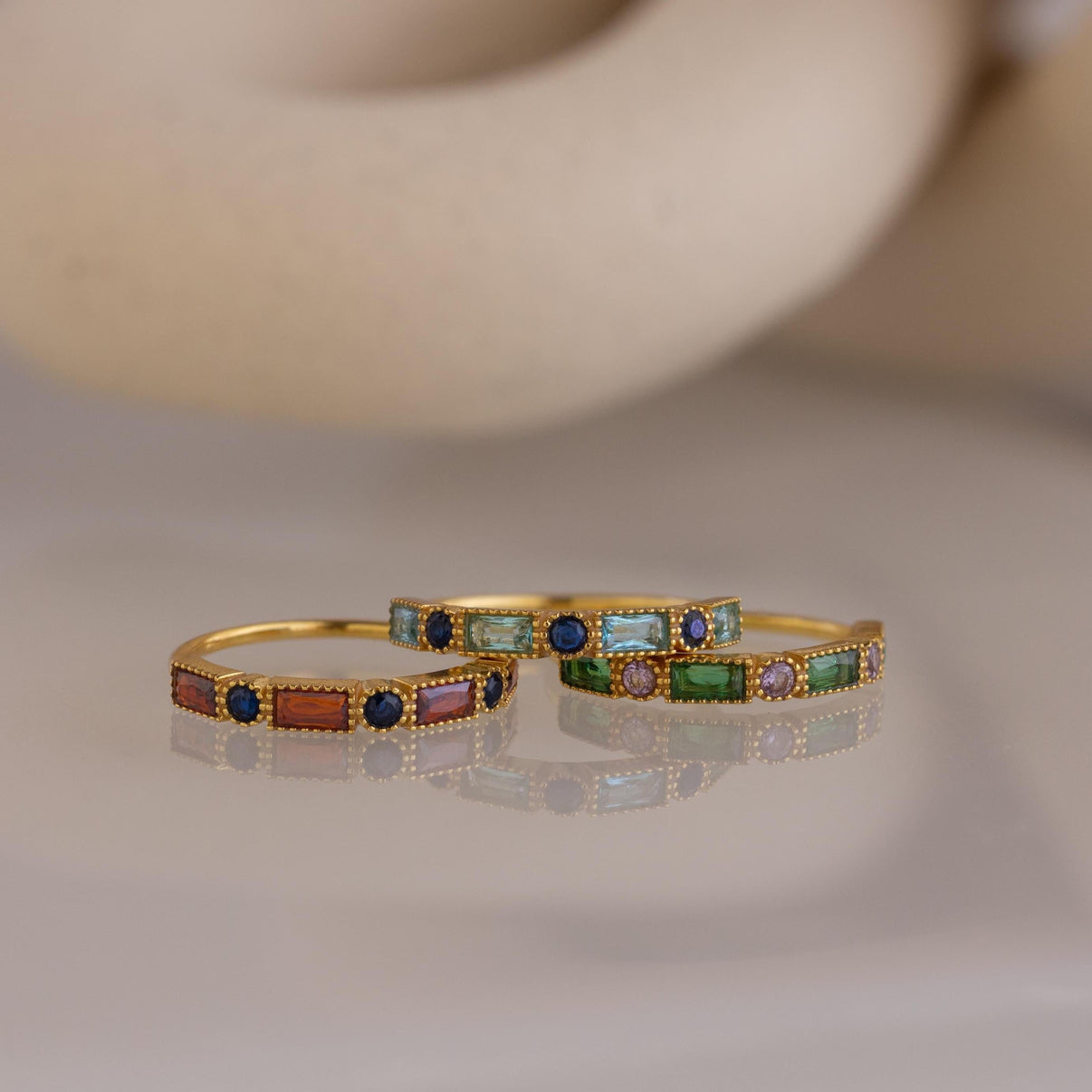 A dainty pop of color with a touch of charm, our Mixed Art Deco Birthstone Ring features a mix of alternating stones set front-facing for just the right amount of sparkle. Personalize it with the birthstone colors of your choice for a sweet and meaningful accent you can wear every day!