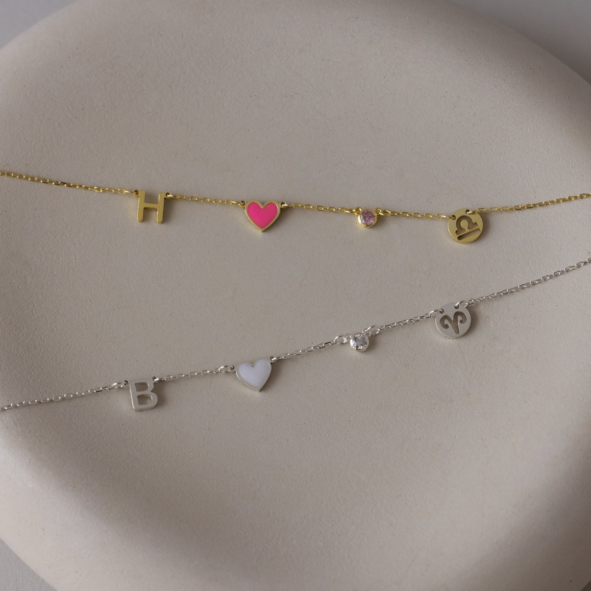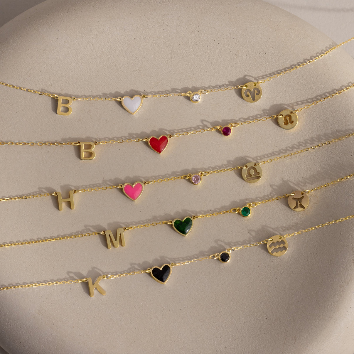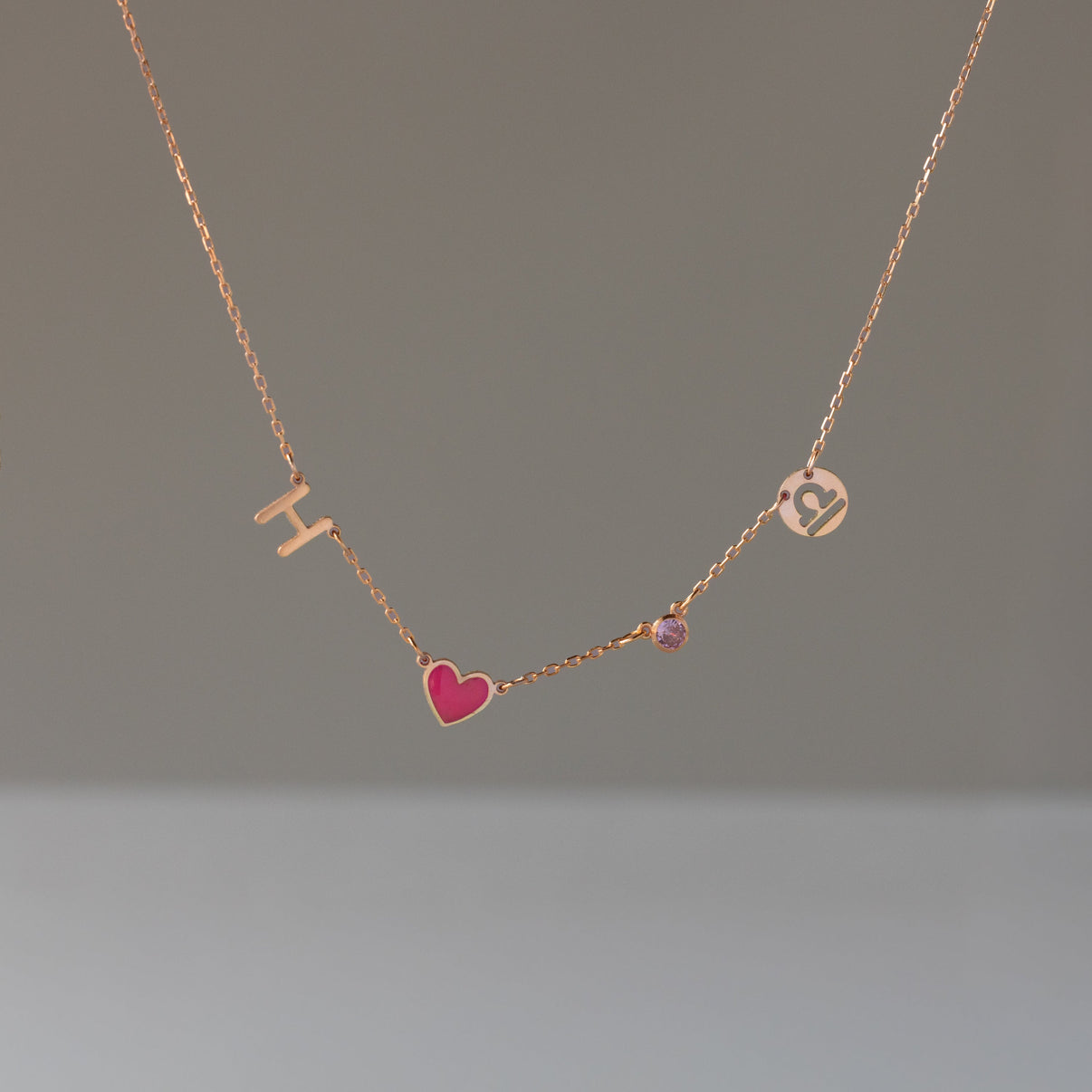 Elegant and personal, our Dainty Space Charm Necklace features a delicate chain adorned with meaningful accents__ bold initial, a vibrant heart, a sparkling birthstone, and a zodiac-inspired disc. Perfect for everyday wear or as a heartfelt gift, it offers timeless style through customizable charm combinations.
